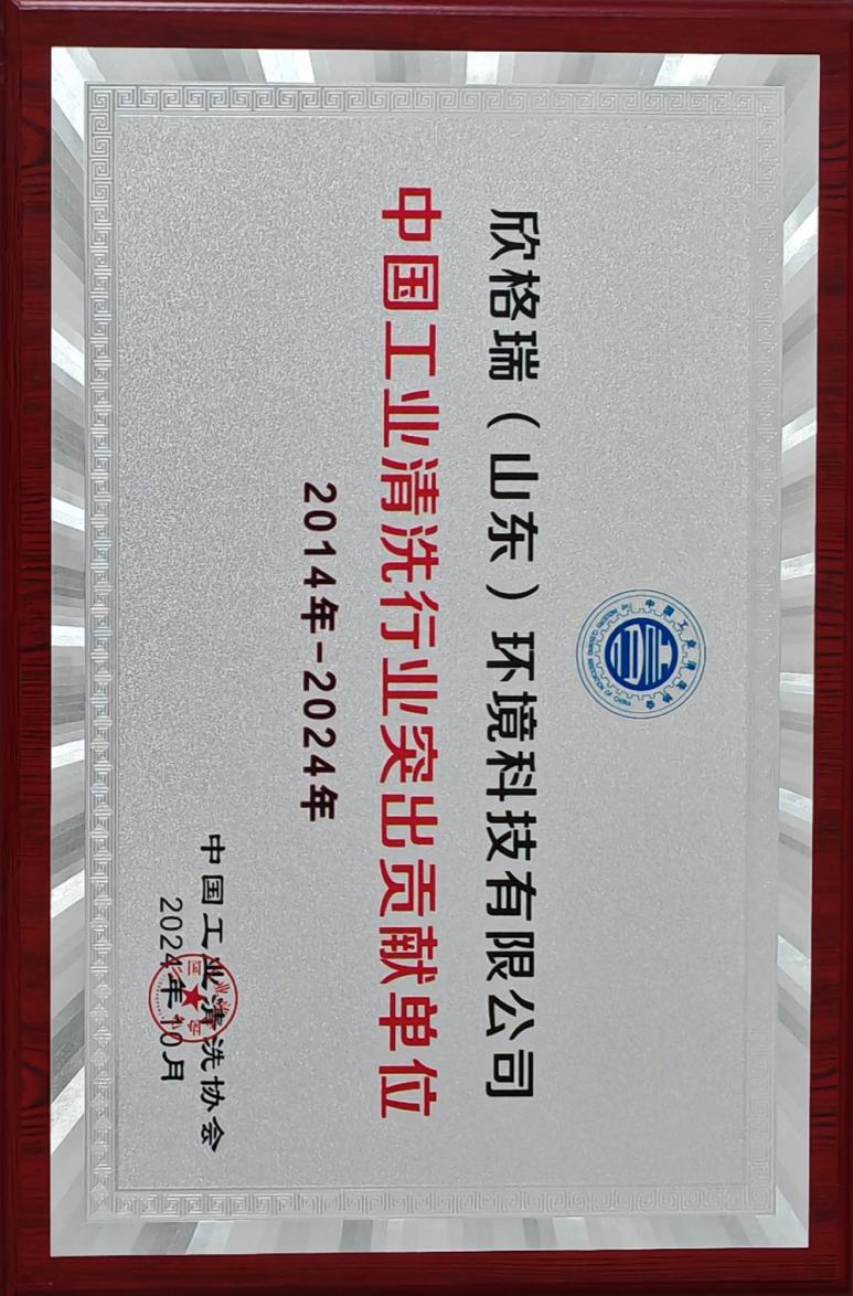 欣格瑞榮獲“中國工業清洗行業(2014-2024)突出貢獻單位”榮譽稱號 --田民格榮獲 “中國工業清洗行業(2014-2024年)突出貢獻人物”榮譽稱號