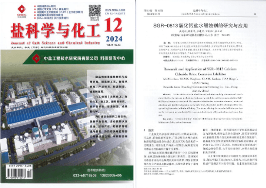 另外,研發中心高德超、田民格等撰寫的《SGR-0813氯化鈣鹽水緩蝕劑的研究與應用》論文,于《鹽科學與化工》2024年12月刊發表。