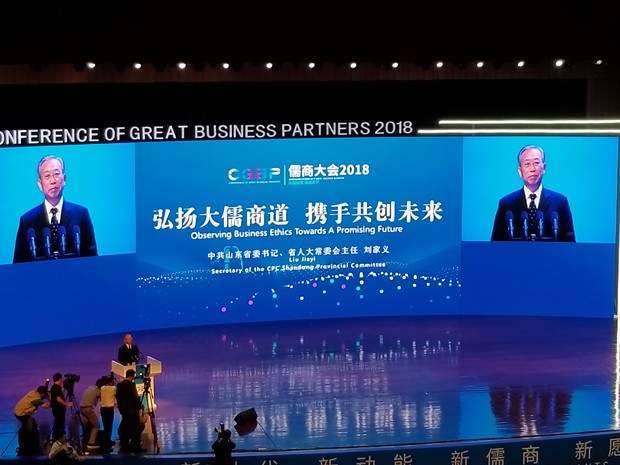 2018年9月28日上午,在美麗的泉城濟(jì)南,山東會堂眾商云集、智者薈萃、群賢畢至。以“大儒商道、至誠天下”為宗旨,以“新時代、新動能、新儒商、新愿景”為主題的“儒商大會2018”在這里隆重開幕,來自國內(nèi)外工商界、科技界、教育界、文旅界、醫(yī)療衛(wèi)生界、金融界、海外社團(tuán)及僑界、新生代和青年創(chuàng)業(yè)者等1120名嘉賓齊聚一堂,共敘儒風(fēng)鄉(xiāng)情,共商合作大計(jì),共享發(fā)展機(jī)遇。